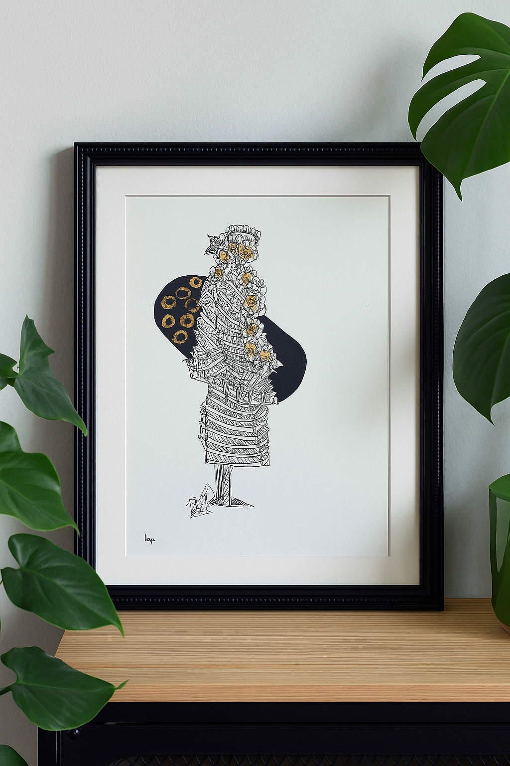 ilustração original, criada à mão em tons terrosos, tamanho A4 (29,7x21cm)