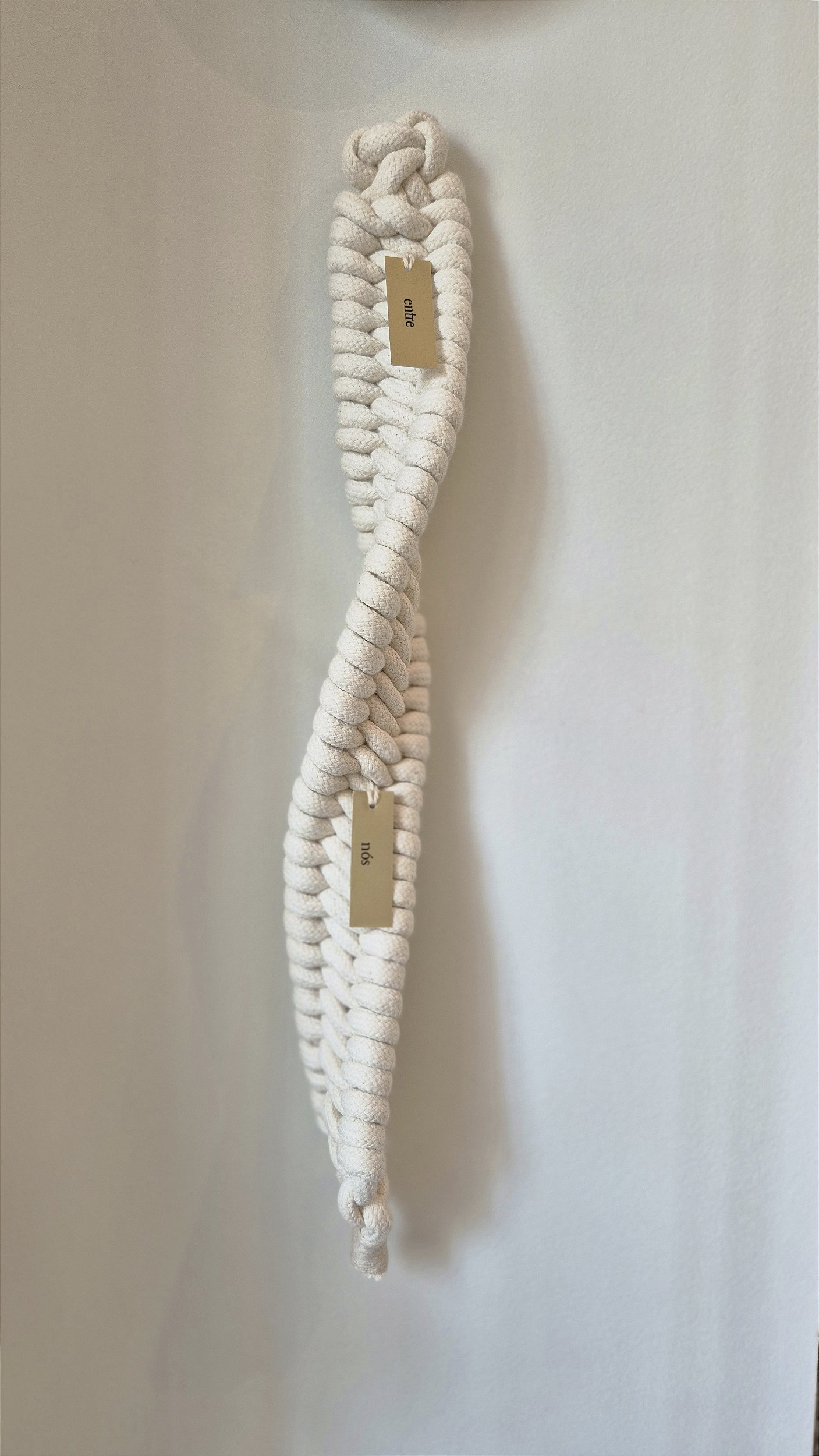 Os nós são pontos de encontro entre forças opostas, marcando momentos de união e tensão. Representam relações que se firmam, se apertam e, por vezes, precisam ser desfeitas para dar espaço a novos laços. Cada nó carrega consigo um gesto de permanência ou transição, evocando a complexidade dos afetos e das conexões humanas.
