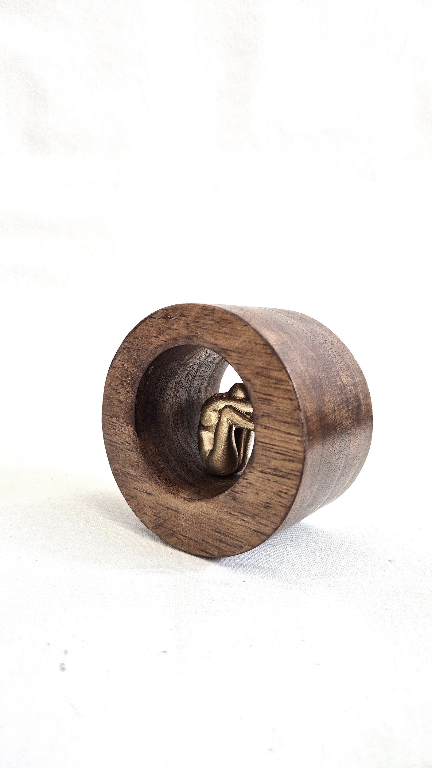 argola de madeira cor Whisky, de 8,5x8,5x5,5cm