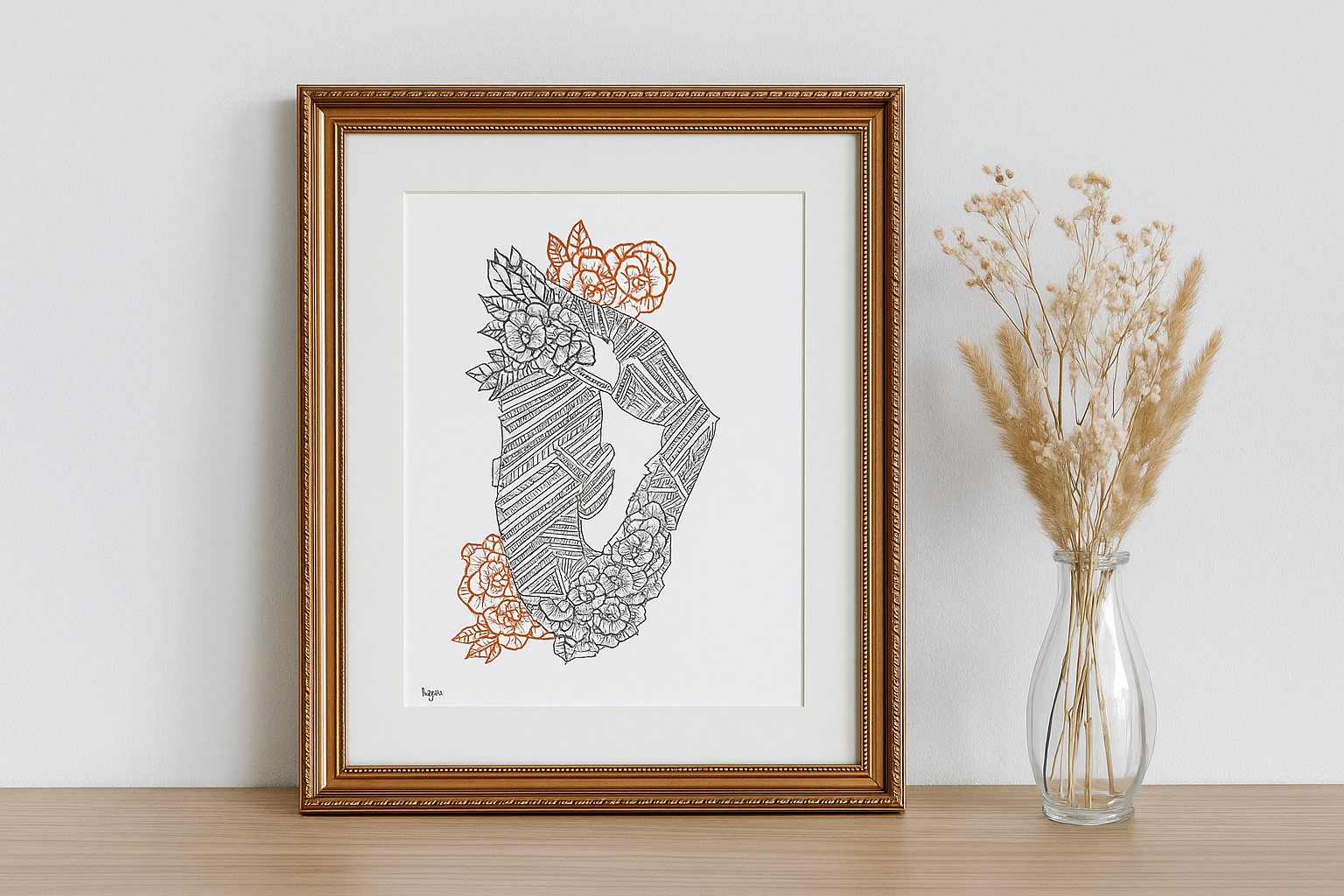 ilustração original, criada à mão em tons terrosos, tamanho A4 (29,7x21cm)