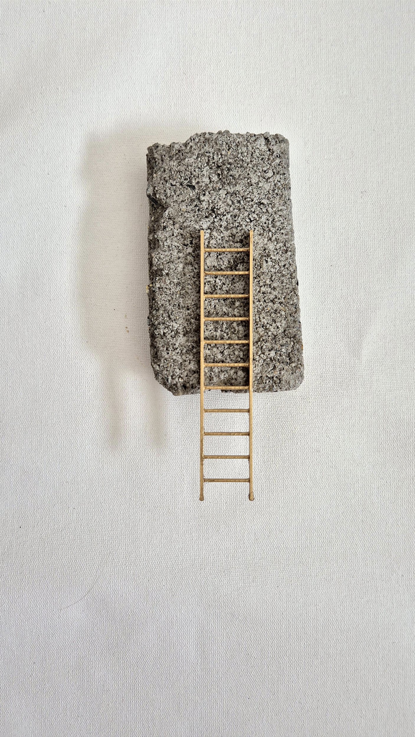 pedaço de concreto com sobreposição de escada impressa em 3D