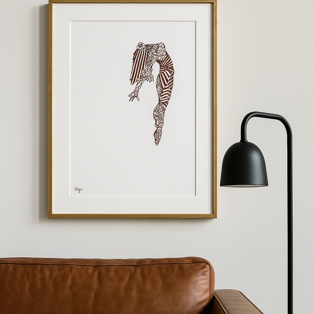 ilustração original, criada à mão em tons terrosos, tamanho A4 (29,7x21cm)