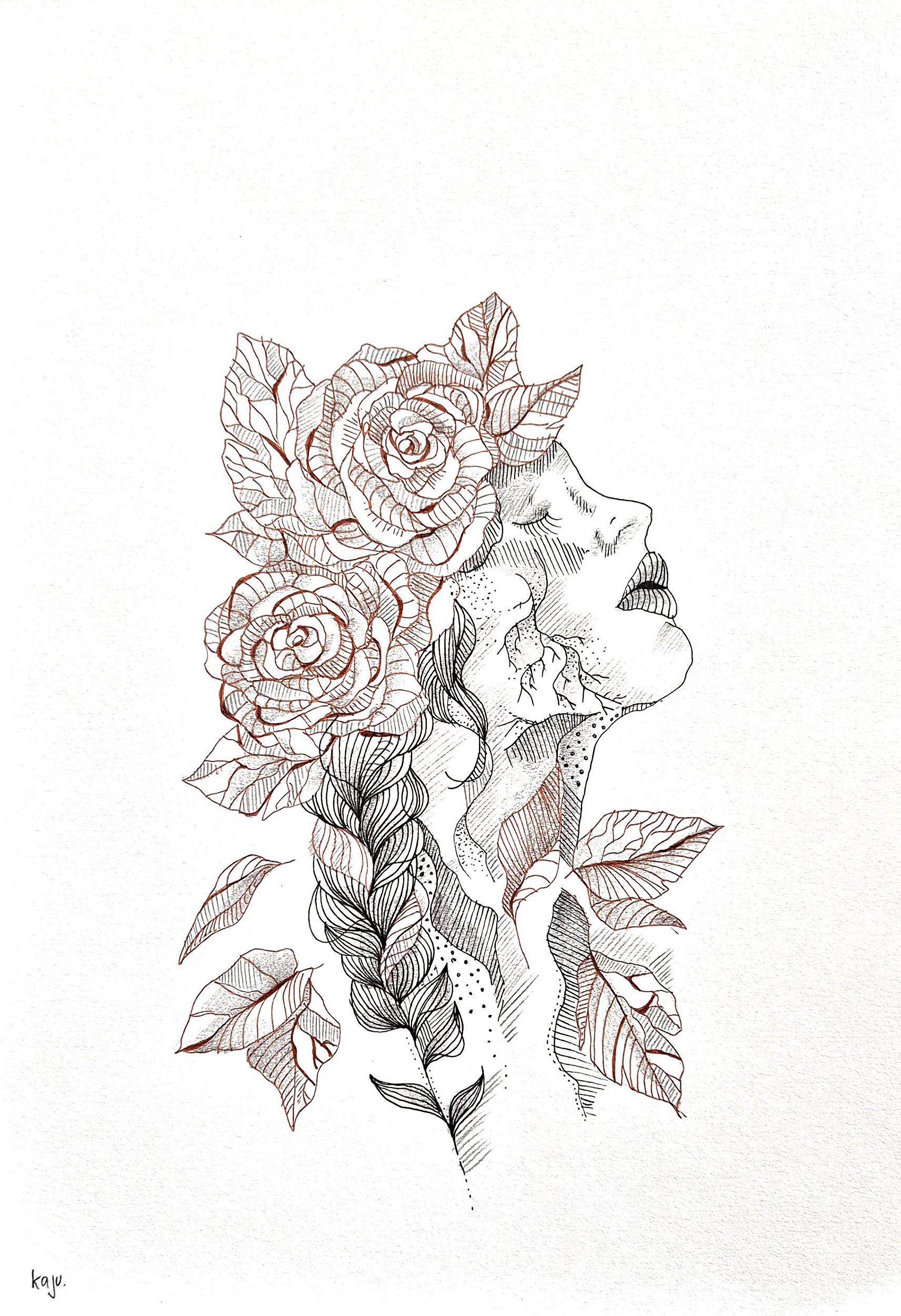 ilustração original, criada à mão em nanquim e terroso, tamanho A4 (29,7x21cm)